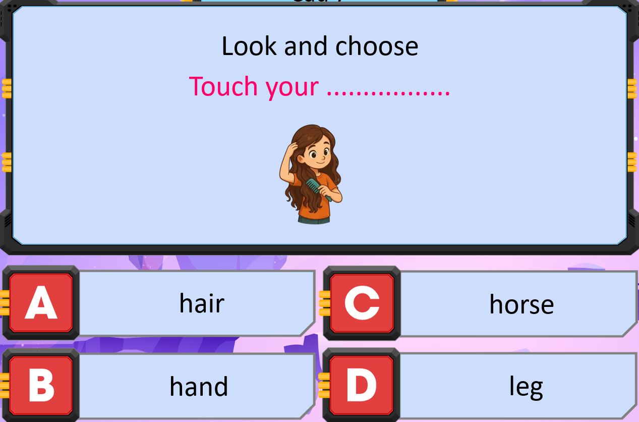 Giải thích: Touch your hair.: Hãy chạm vào tóc của bạn đi.